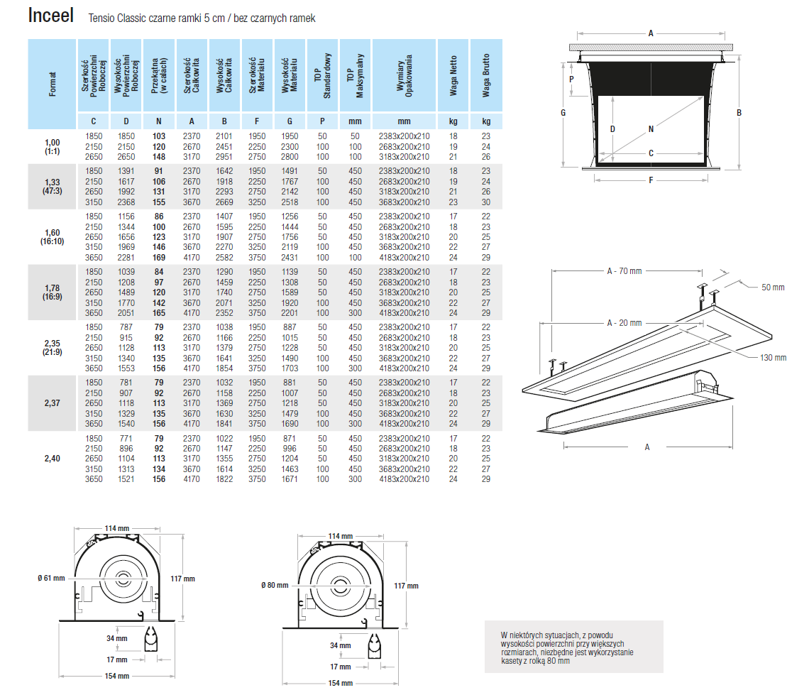 Adeo stworzyło ekran, który idealnie wpasuje się w estetyczny wystrój domu lub przestrzeni biurowej. Dzięki innowacyjnemu systemowi montażowemu ekran może zostać ukryty w podwieszanym suficie co sprawia, że każdy dopasuje go do swoich potrzeb. System pozwala na szybką i łatwą instalacje niezależnie od tego przez kogo będzie wykonana. W tym modelu estetyka spotyka się z praktycznością, zastosowanie dwóch zatyczek na końcach obudowy sprawia, że system montażu jest niewidoczny i tym samym współgra z otoczeniem. Inceel jest ekranem, który można ukryć co powoduje nie marnowanie przestrzeni w domu lub biurze.