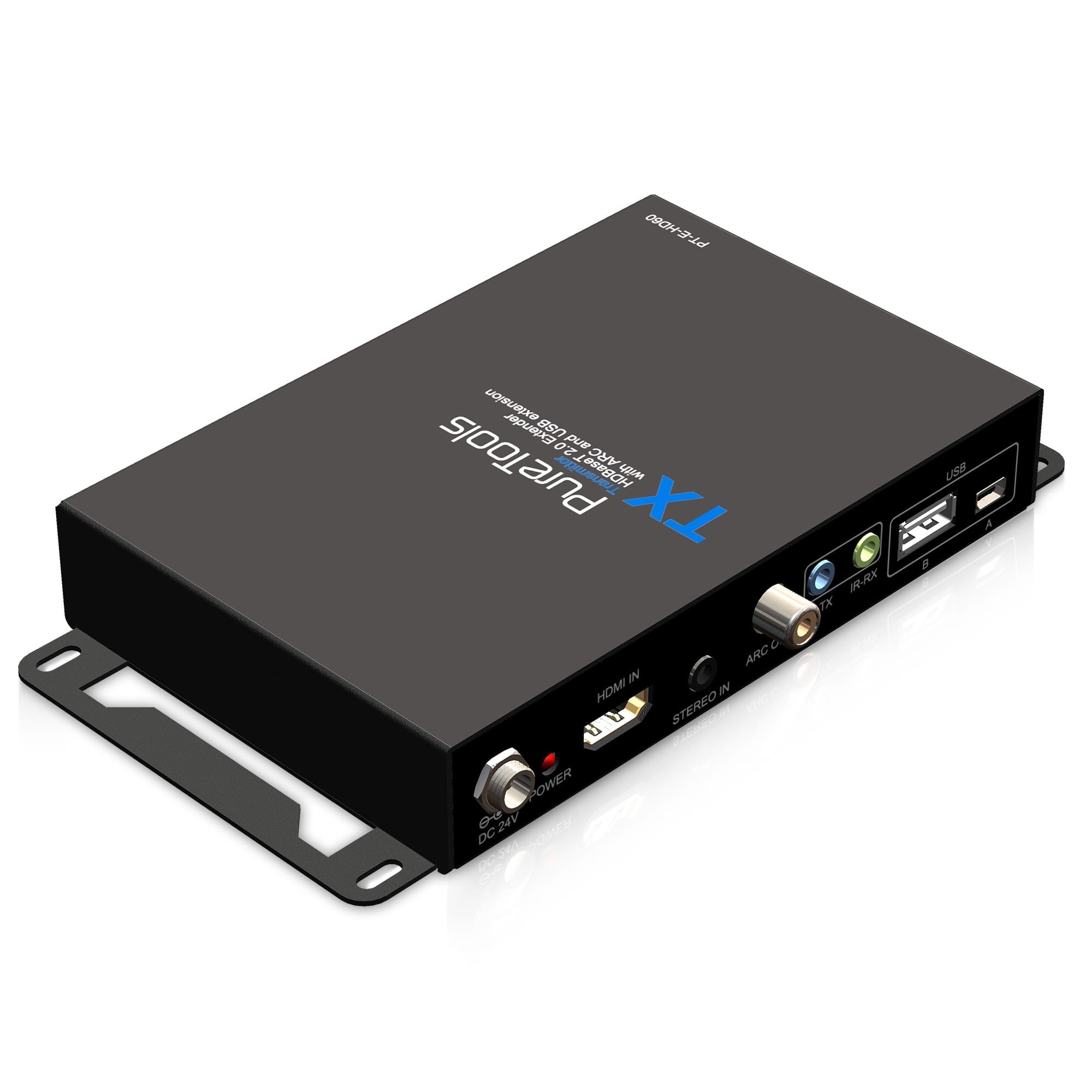 Przedłużacz PT-E-HD60 HDBaseT 2.0 z RS-232, dwukierunkowym IR, Ethernet, PoC, ARC i USB 2.0 zwiększa odległość transmisji A/V do 100 m dla sygnałów HDTV do FullHD/1080p z 48-bitową głębią kolorów, lub w odległości 80 m dla 4K@60 4:2:0, 8 bitów.